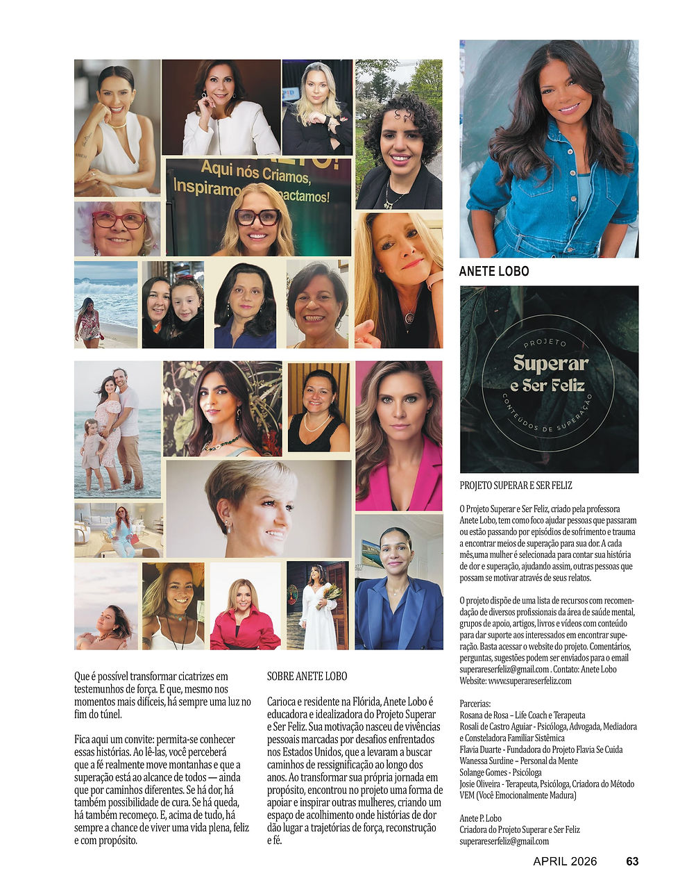 Anete Lobo é carioca, educadora e residente na Flórida desde 1993. Ela decidiu criar este projeto pois ela mesma vivenciou suas próprias adversidades nos Estados Unidos. Anete encontrou, ao decorrer dos anos, formas de ressignificar suas dores usando várias ferramentas, uma delas foi através deste projeto de ajudar outras mulheres a encontrar superação.
